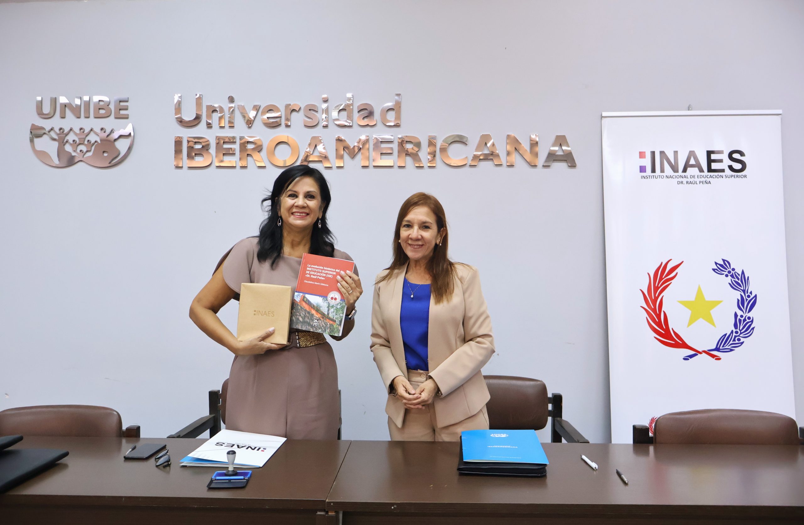 El mismo se realizó con la presencia de autoridades de ambas instituciones. En representación de la UNIBE, firmó el documento la Dra. Sanie Romero, Rectora de dicha casa de estudios, y por el INAES, la Prof. Dra. Claudelina Marín Gibbons, Directora General.