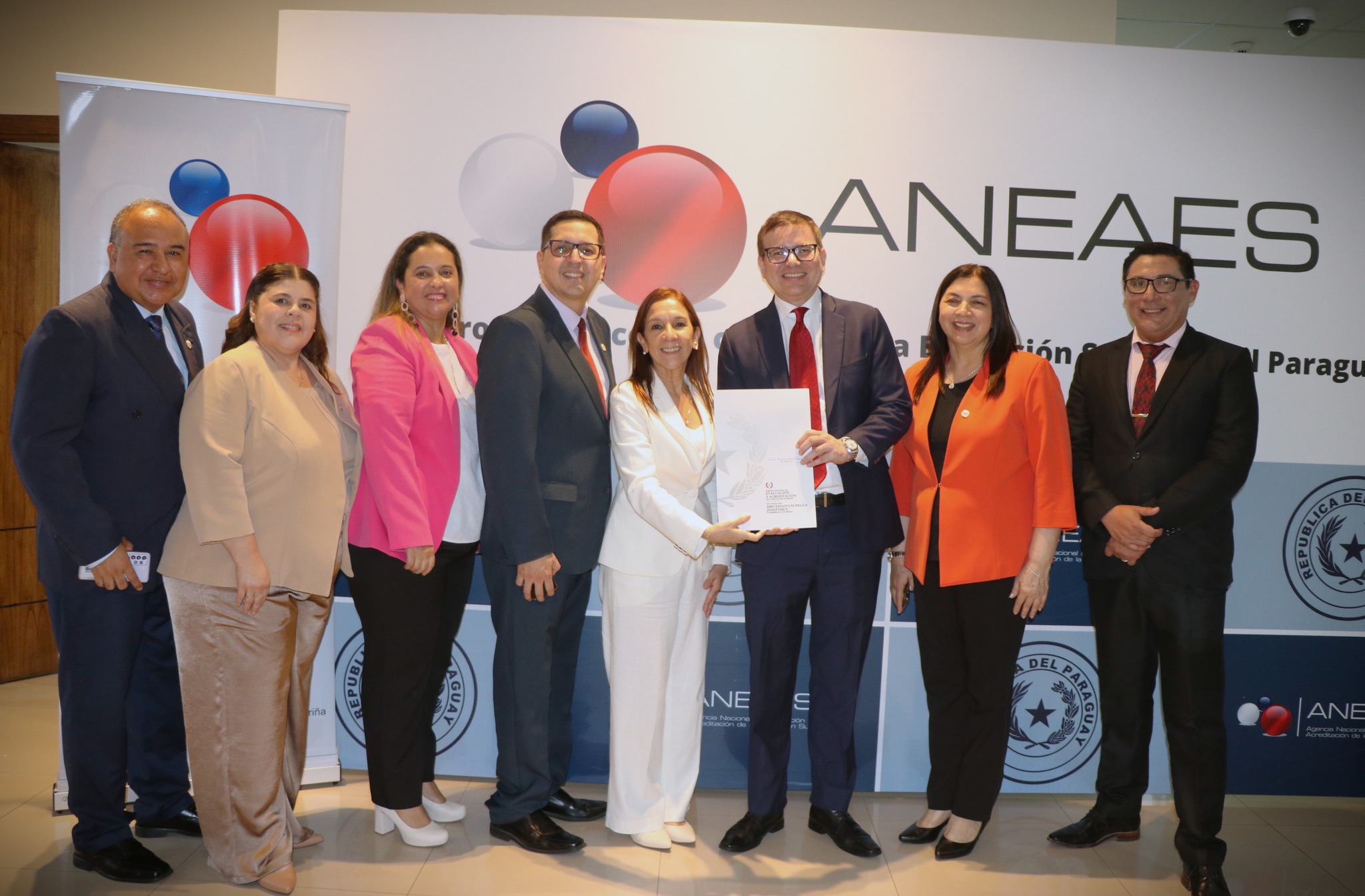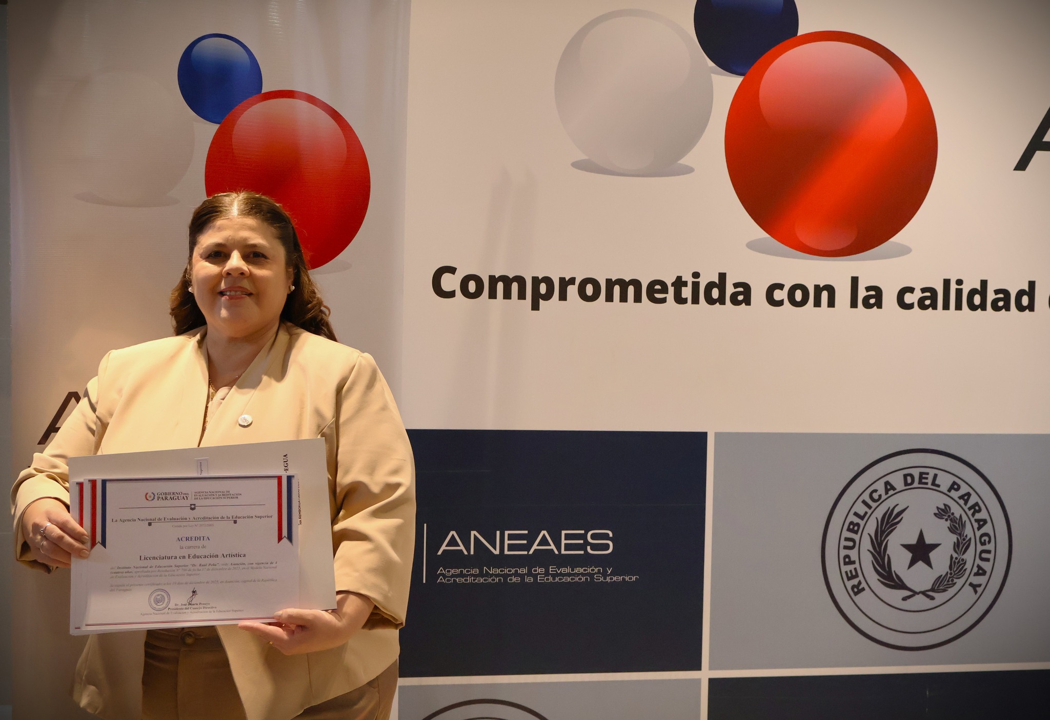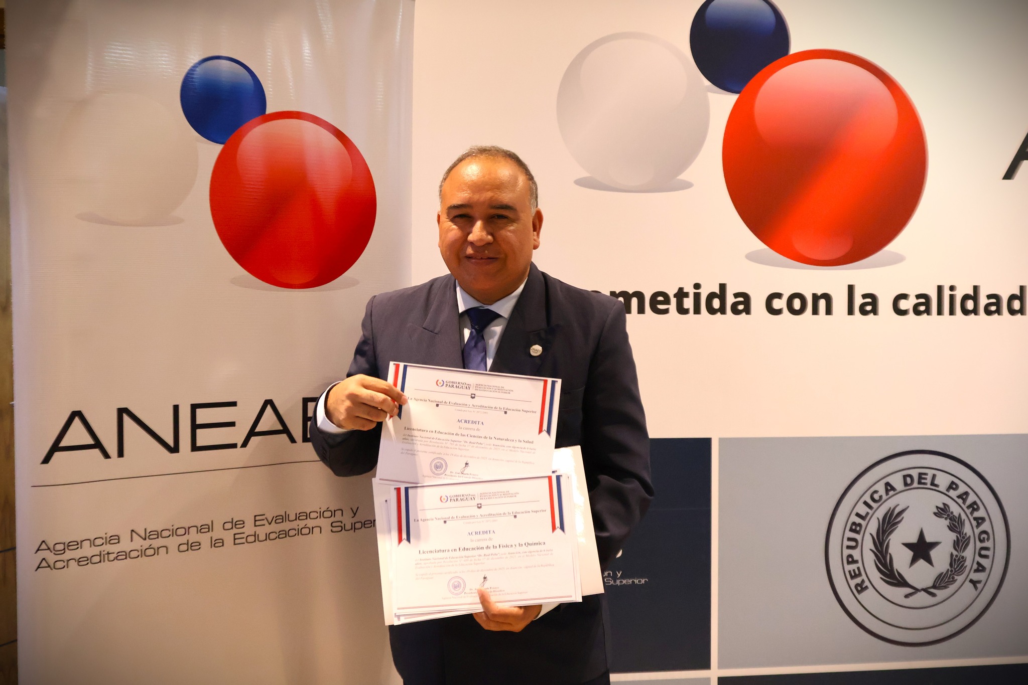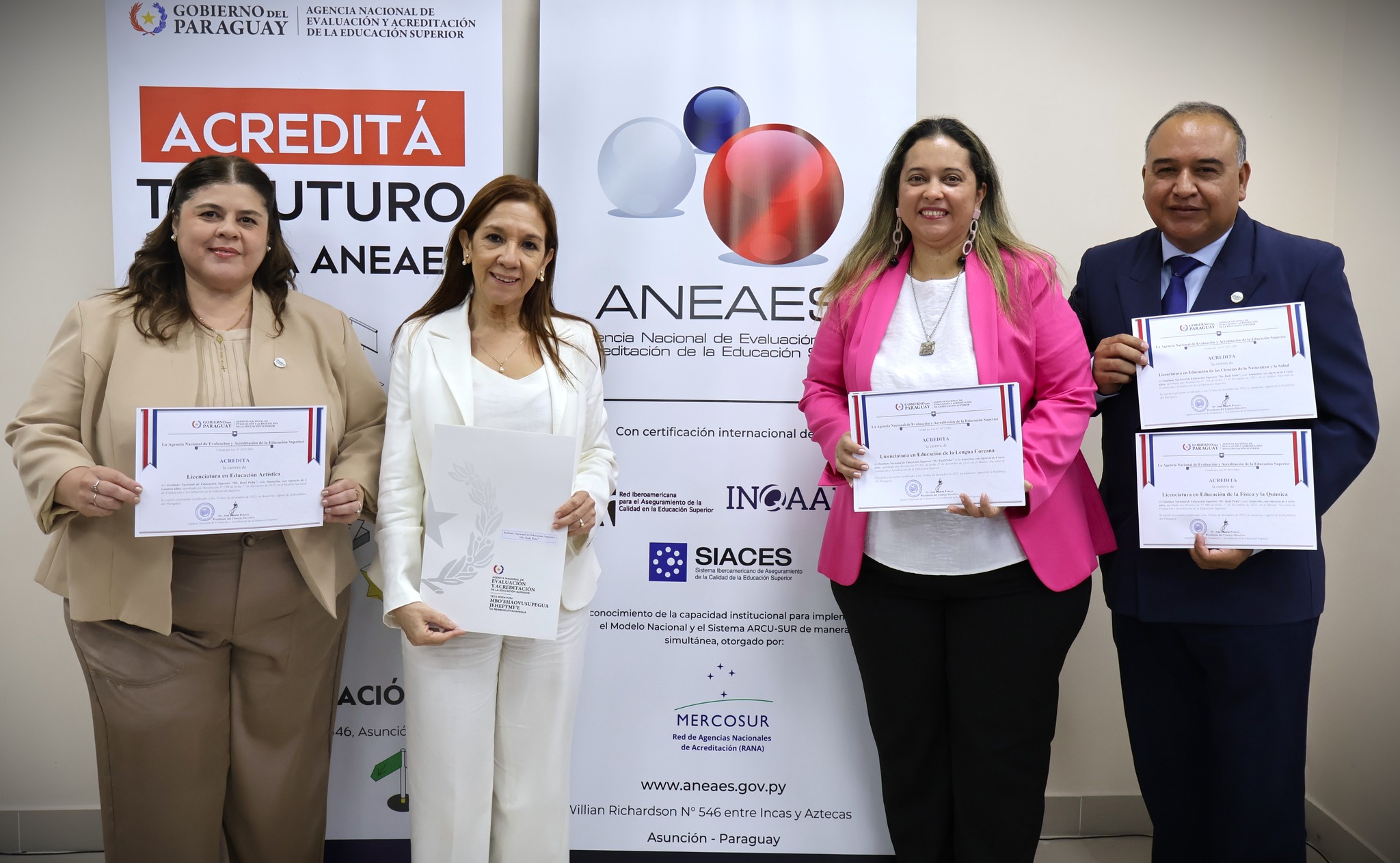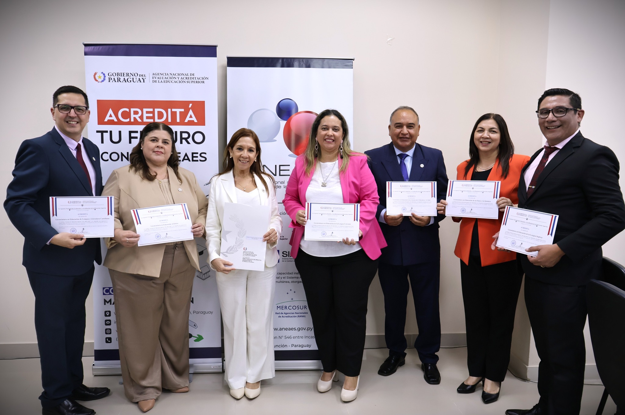 Durante el acto oficial de acreditaciones de carreras de Grado y Postgrado de la ANEAES, el Instituto Nacional de Educación Superior “Dr. Raúl Peña” (INAES) recibió el certificado de acreditación para seis carreras de Grado, un reconocimiento al compromiso institucional con la calidad académica y la excelencia educativa.