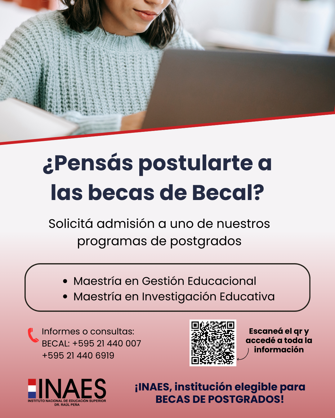 El Instituto Nacional de Educación Superior “Dr. Raúl Peña” (INAES) forma parte de las instituciones educativas habilitadas para postular al Programa Becal – Postgrados Nacionales, en su tercera convocatoria, noviembre 2025.